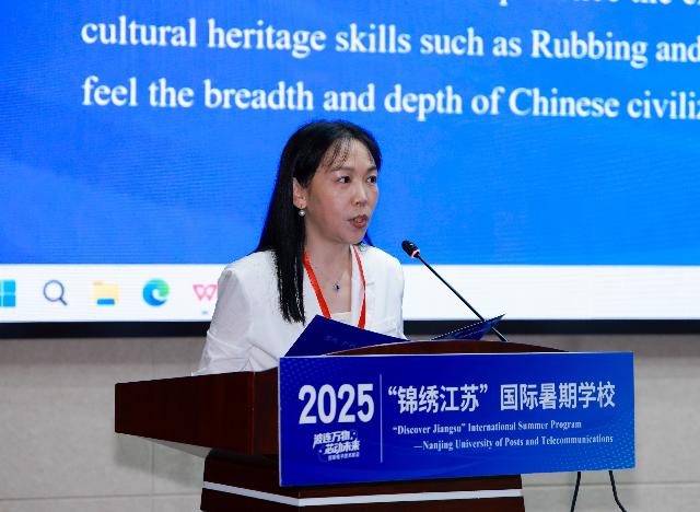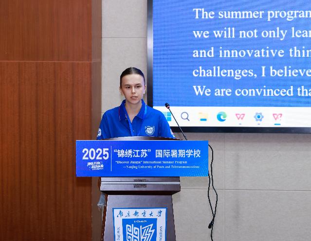 中国学员代表赵申怡在发言中感谢学校提供这一多元化的学习平台,让她能够在学术交流中提升认知,在文化体验中开阔眼界。她表示非常期待通过课程深入了解智能电子技术的最新进展,强化实践与科研能力,并通过文化课程感受南京的历史底蕴与中华传统文化的魅力。