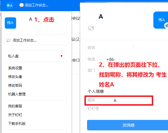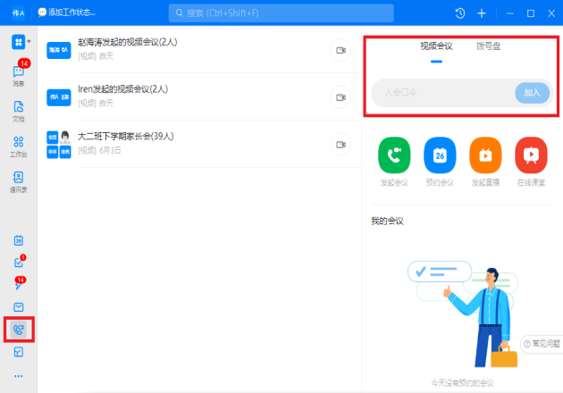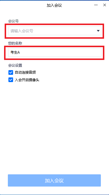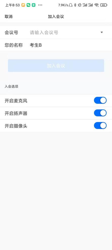 腾讯会议PC端 腾讯会议APP 备用平台:打开 钉钉会议 软件/APP,先修改昵称为“考生姓名A/B”,再点击左侧工具栏上的“会议”图标,在右侧输入会议口令,即可加入会议。钉钉考场将有2个会议号,一个是等候室,一个是正式考场,考生先进入等候室进行身份校验,校验通过后进入正式考场。