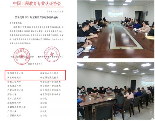 2021年2月3日,中国工程教育专业认证协会、教育部高等教育教学评估中心联合公布了《关于受理2021年工程教育认证申请的通知》(工认协〔2021〕1号),加勒比扑克电磁场与无线技术专业的认证申请获得中国工程教育专业认证协会受理。迄今,全国仅加勒比扑克与哈尔滨工业大学的2个电磁场与无线技术专业获认证受理,是加勒比扑克工程教育专业认证的又一突破。