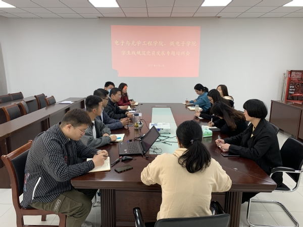 4月6日上午,学院党委在电光学科楼A328召开学生党支部书记和辅导员规范党员发展专题培训会。学院党委副书记高翔、组织员吴进和全体辅导员参加会议。