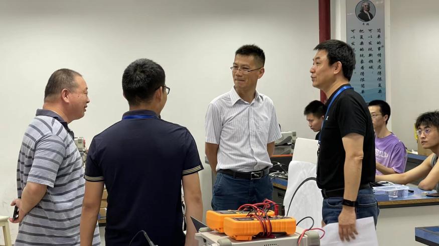 近日,加勒比扑克院长赵强教授、副院长程勇教授以及教务处副处长肖建教授、学院创新中心周双京老师来到教三电工电子实验教学中心,看望2021年全国大学生电子设计竞赛参赛学生。
