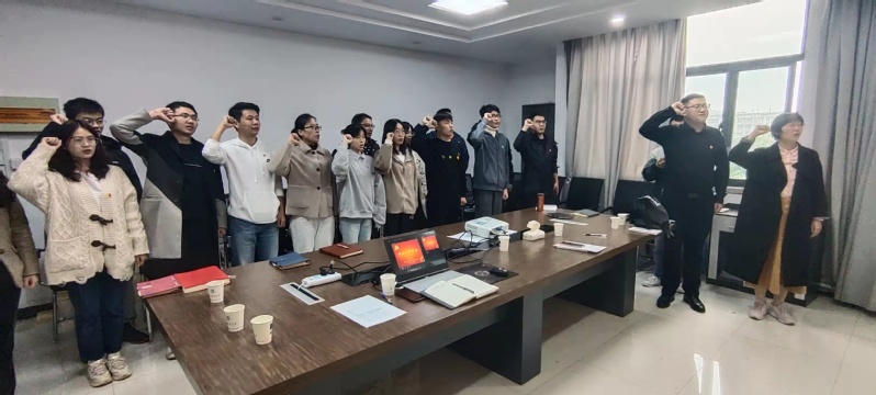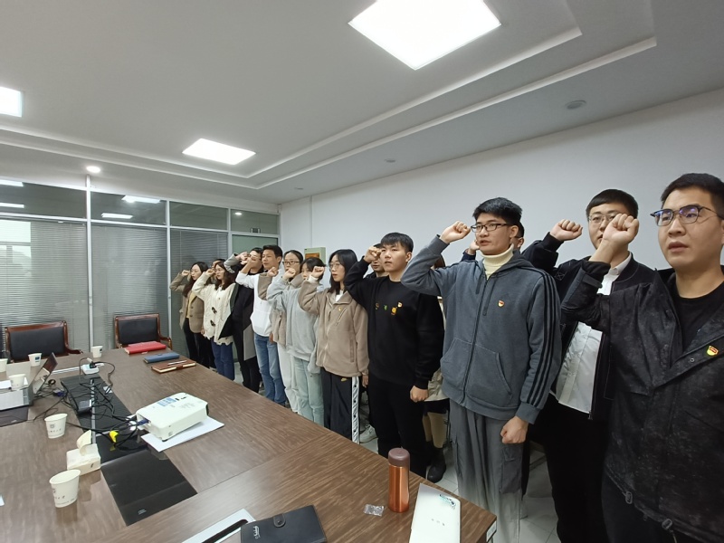 会议最后,支部全体党员高举右拳、重温入党誓词!