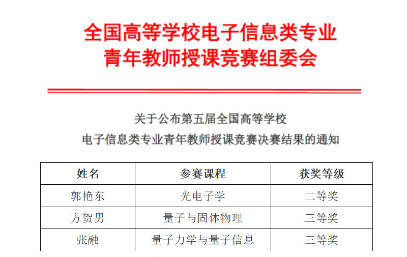 10月15日-17日,由教育部学校规划建设发展中心指导,教育部高等学校电子信息类专业教学指导委员会、中国电子学会主办的第五届全国高等学校电子信息类专业青年教师授课竞赛决赛成功举办。