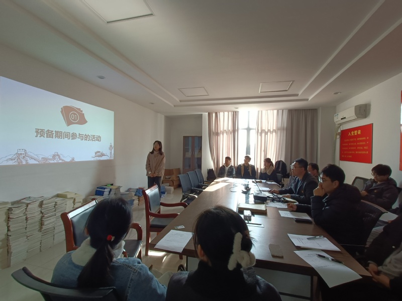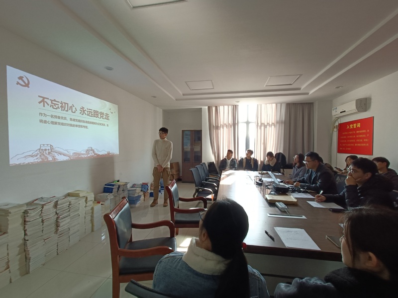 首先,申请转正的三位预备党员同志认真、诚恳地以课件形式,图文并茂汇报了预备期间的思想、工作、学习和一年来积极参加党支部各项活动情况,以及认真学习党的先进理论情况,并针对自身存在的不足之处提出了努力方向,表达了坚定不移跟党走的信念和为共产主义事业奋斗终身的强烈愿望。三位同志一致表态,要坚定共产主义信念,勇于科研创新,用实际行动践行自己的入党誓词。