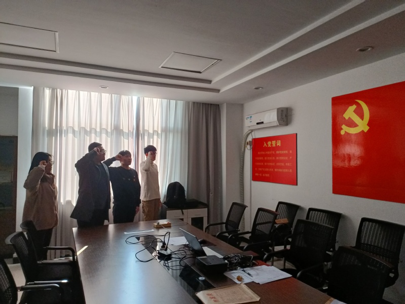 最后,在党支部书记李双德领誓下,高天宝、梁汇彬和梁静宜三位党员一起面对党旗庄严宣誓。