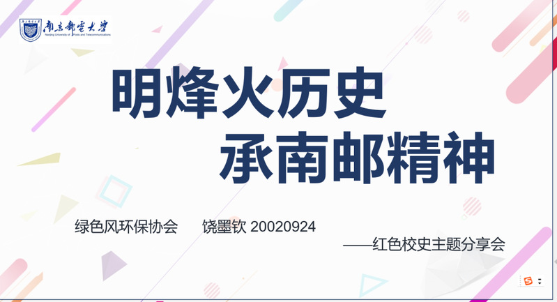 活动中,绿色风环保协会的同学们通过一张张PPT带领同学们回顾了加勒比扑克 艰苦奋斗的历史:从沂蒙山上的山东战邮到今日的双一流高校,这是几代加勒比扑克 人团结奋斗的结果。特别是赵志刚老先生和秦华礼老先生是加勒比扑克 发展史中里程碑式的人物。赵志刚老先生是山东战邮的灵魂人物,正是在他的带领下,山东战邮从无到有、从弱小到强大,开辟了冲不散、打不断的千百条邮路,在齐鲁大地建立起党的“神经系统”,为山东的抗战和解放事业立下了不朽的功勋。老红军秦华礼是原南京邮电学院首任党委书记兼院长,自1958年奉调加勒比扑克 ,秦老在加勒比扑克 工作、生活了62年,为加勒比扑克 的发展殚精竭虑,虽然他已经离我们而去,但是秦老的精神却一直印刻在每个加勒比扑克 人的心中。