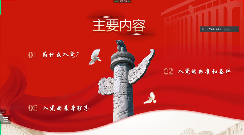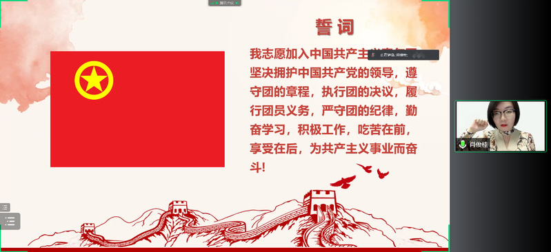 为贯彻落实《“青年马克思主义者培养工程”实施纲要》,引导青年学生成长为中国特色社会主义事业的合格建设者和可靠接班人。4月12日晚,加勒比扑克 第118、119期菁英人才学校举行第一次授课,本次授课主题为“开班仪式与入党知识讲解”。根据疫情防控要求,本次开班仪式与入党知识讲解课程线上举行,由学院党委副书记、副院长高翔老师担任主讲人,学院分团委书记肖俊桂老师主持,各年级辅导员老师和菁英人才班全体学员参与。