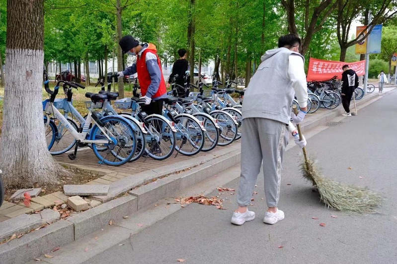 日暖莺啼春初至,校园道路上早早就聚集了一群群电光柔院的同学们。他们挽起袖口,整装待发,活像一群充满朝气的“校园小卫士”。春秋代序自有章法,而一个校园要充满朝气,不仅要有素净的外表,更需要井然有序的安排。而同学们颇有新意地考虑到了这点,他们沿路拾捡垃圾,不放过校园的一丝污垢,也不忘卖力搬起随意停放的自行车,将他们整整齐齐地排列在路边。一寸抬手,便恢复一寸洁净;一尺步行,便成就一尺不苟。他们在春日暖阳下的校园里穿梭,献上了对学校的一份沉甸而朴实的心意。