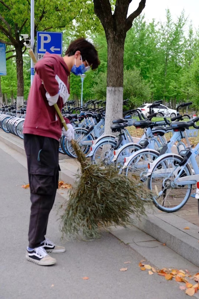 清晨的第一缕阳光落在了校园环卫工人们的肩上,在他们身边,是一位位充满朝气的电光柔院同学们,他们放下书本,走出课堂,接过扫帚,穿上马甲,集结成劳动小分队,担当起维护校园整洁的使命。“如来佛祖”、“滑动变组”…… 透过这些组名,仿佛能感受到柚子们身上洋溢出来的青春活力以及对劳动生活那纯粹的热情。走出象牙塔,他们不再是凭纸笔话知识,而是以劳动塑精神,以汗水明教育,贴近生活,感受生活。那于风中挥动的手臂,于阳光下奔走的身影,是春日校园中最为生动的景象。