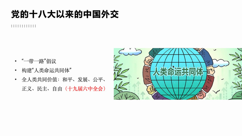 本次授课主要由“传统中国的外交理念”“屈辱中的进步:近代中国外交”“中国现代外交的发展”三部分组成。简单的引入后,黄老师援引原中国人民大学国际关系学院外交系主任金正昆先生的话,对外交的定义进行阐释:“外交是一个主权国家通过其官方代表……进行的正式的官方之间的交往。”从春秋战国时期,到近代中国外交失败,再到党和新中国外交事业的起步和发展,黄老师全面概述了中国外交的历史,总结了其中的启发和教训。他提到,党的十八大以来,以“一带一路”倡议、“人类命运共同体”、党的十九届六中全会提出的“全人类共同价值”为代表的一系列观念的提出,集中体现了我国新时代的外交成果。
