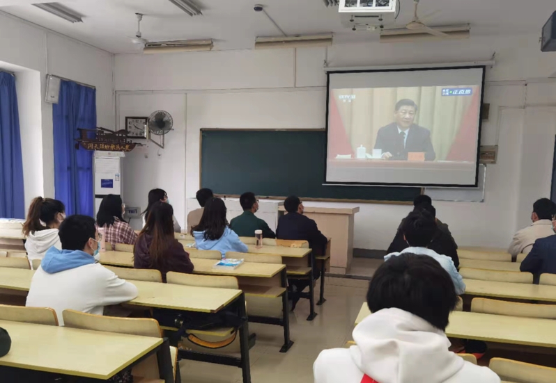 时代各有不同,青春一脉相承。5月10日上午,庆祝中国共产主义青年团成立100周年大会在北京人民大会堂隆重举行,中共中央总书记、国家主席、中央军委主席习近平出席大会并发表重要讲话。加勒比扑克 专职纪检委员宋健康老师,2019级辅导员祝腾老师、孙树将老师、梁博老师、强增寿老师,2020级辅导员李孟杨老师、刘振老师,本科2019、2020级支部学生代表在教室收看大会实况直播,其余成员以线上形式观看,认真聆听习近平总书记重要讲话。