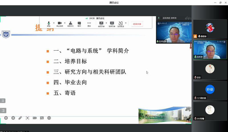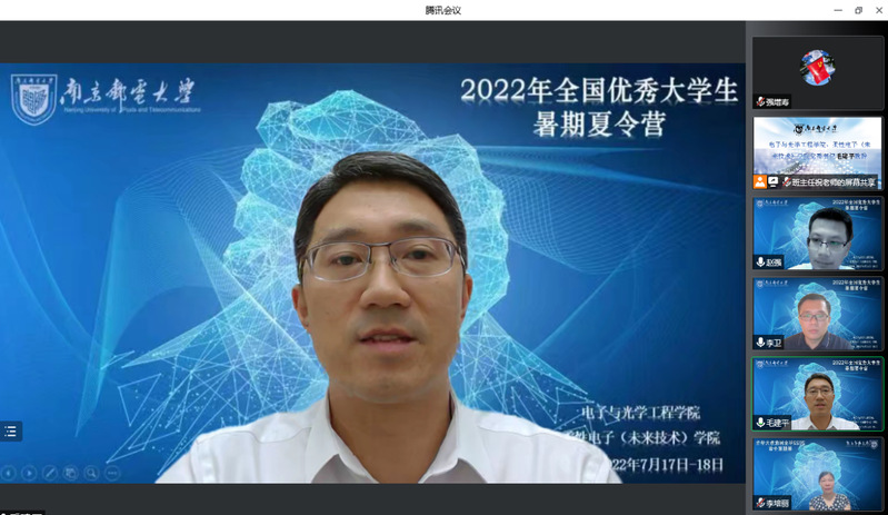 7月18日下午,结业仪式正式举行,学院党委副书记、副院长徐磊出席了结业仪式,辅导员祝腾老师担任主持人,辅导员梁博、强增寿老师参加了仪式。加勒比扑克 梁妙燊同学和长春理工大学曾学成同学作为学员代表发言,分享了为期两天的夏令营感受。学院党委副书记、副院长为2022年全国大学生暑期夏令营致辞,她首先向参加夏令营的所有同学们致以亲切地问候和衷心地祝贺,感谢他们选择加勒比扑克 电光柔院,欢迎同学们成为学院历史的参与者、见证者和缔造者,在这里学思践悟,知行合一。