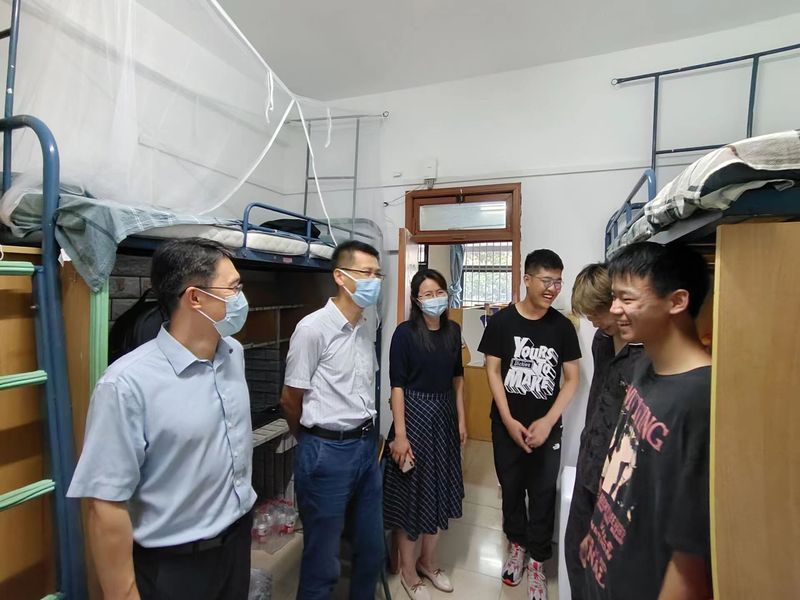 走访过程中,院领导们详细询问并查看了学生宿舍管理情况,依次走进了多间宿舍,毛书记慰问关心新同学们目前的生活适应情况,表达了学院对同学们的亲切关怀,勉励同学们要珍惜美好的青春时光,扎实学好专业知识,努力提高综合素养,争做德智体美劳全面发展的新时代大学生。赵院长叮嘱同学们,要严格遵守疫情防控规定,提升安全意识,重视个人防护,加强体育锻炼,保持阳光、积极、乐观向上的心态,以崭新饱满的精神面貌迎接大学生活。刘院长殷切希望新同学们可以快速融入大学生活,积极做好课程预习,在大学里收获丰富的知识。辅导员老师们贴心叮嘱同学们自觉遵守学校疫情防控规定,严格落实健康日报制度,做好宿舍卫生保洁,养成良好的生活卫生习惯,注意身体健康,共同营造安全、舒适、温馨的宿舍环境。