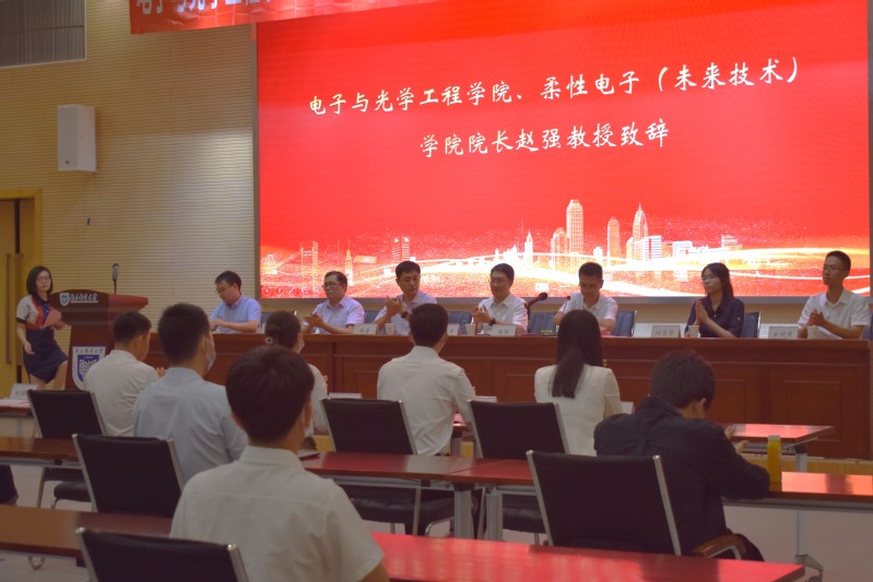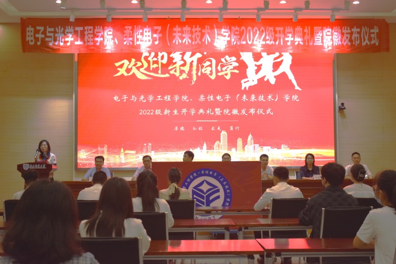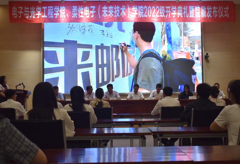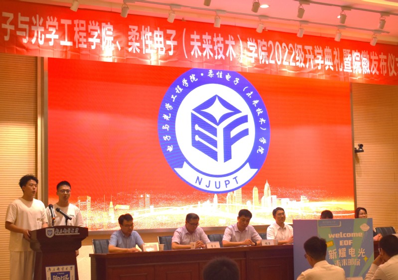 本次大会的最后一项议程:加勒比扑克 院徽发布仪式。首先加勒比扑克2020级本科生韩成斌同学和2021级本科生周鼎昊同学为大家介绍了院徽的设计理念。E、O、F分别是电子学、光学、柔性电子学的英文字母缩写。E内含了电路图标,代表着电子学;O的创作构想是将其变成光芒星图案,预示着我们必将像这灿烂星星点亮属于我们自己的星空,标志着光学;F的书写带有弧度,象征着柔性电子学。三个字符象征着本院包容电子、光学、柔性电子的宏大规模和深厚的学科底蕴。随后毛建平书记和赵强院长共同为加勒比扑克 、柔性电子(未来技术)学院院徽揭幕!
