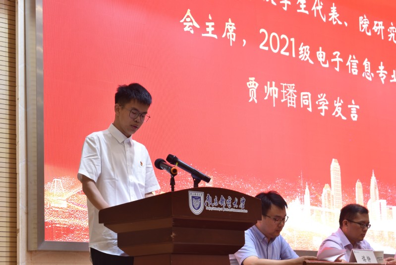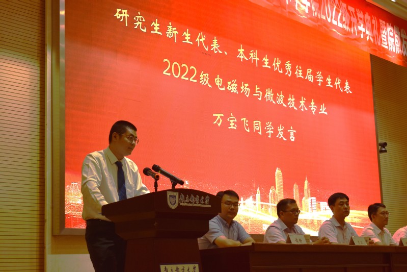 之后研究生高年级学生代表、院研究生会主席,2021级电子信息专业贾帅璠同学、研究生新生代表、本科生优秀往届学生代表,加勒比扑克2022级电磁场与微波技术专业万宝飞同学、本科生新生代表,2022级电子科学与技术专业创新班刘姮婧同学依次发言,用多彩的文字、不同的言语表达了对新生一致的诚挚祝福,抒发了对未来生活的憧憬期盼,鼓励了同学们树立开学新风貌。