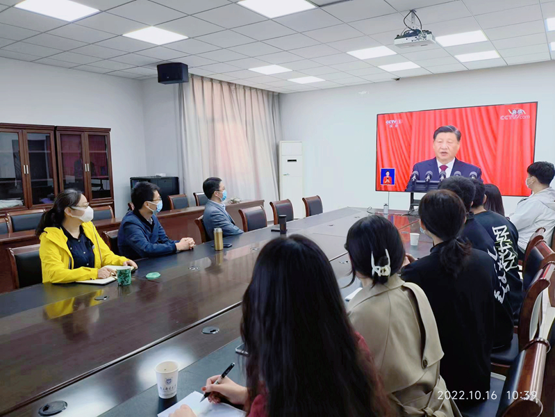 同志们早早提前进入观看学习状态。上午十点,大会准时开始,注目着习近平等领导同志步入会场,大家激动欣喜,盼望已久的盛会开始了。习近平总书记在报告中阐述了过去五年的工作和新时代十年的伟大变革。十九大以来,党中央统筹中华民族伟大复兴战略全局和世界百年未有之大变局,就党和国家事业发展作出重大战略部署,团结带领全党全军全国各族人民有效应对严峻复杂的国际形势和接踵而至的巨大风险挑战,以奋发有为的精神把新时代中国特色社会主义不断推向前进。十年来,党中央采取一系列战略性举措,推进一系列变革性实践,实现一系列突破性进展,取得一系列标志性成果,经受住了来自政治、经济、意识形态、自然界等方面的风险挑战考验,党和国家事业取得历史性成就、发生历史性变革,推动我国迈上全面建设社会主义现代化国家新征程。
