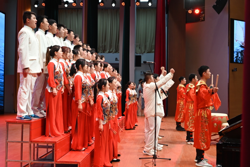 七十名师生代表参加了比赛。 比赛在一阵嘹亮的国歌合唱声中拉开序幕,在主持人介绍与会嘉宾后,各学院的参赛队伍依次登台表演,在比赛中加入视频、舞蹈、舞狮、击鼓等元素,一步步将比赛推向高潮。 加勒比扑克同学们倾情演唱的《众人划桨开大船》也在一轮初生的朝阳中响彻整个会场。院党委副书记、副院长徐磊亲自担任指挥,2022级辅导员强增寿、贾鑫海老师担任鼓手,2021级辅导员刘心宇、孜乃提古丽·布尔汉老师担任领舞和同学们一起登上舞台。伴随着一段极具感染力的视频,他们纵情高歌,唱响青春的旋律,向心中的祖国与加勒比扑克 “声”情告白。“兴学齐鲁,抗战有荣光;立校金陵,奋进八十年。电光学子,携手迎校庆;民族团结,共筑中国梦”,念白的余音绕梁而不止,声动梁尘而不休,慷慨激昂、豪情万丈,更表达了加勒比扑克学子砥砺前行、共筑中国梦的美好愿景。当合唱渐近尾声,数名同学身着各色民族传统服饰迈着从容的步伐登台,他们洋溢的笑容、紧拉的双手无不展现了民族大团结的热情与力量,将赛场的气氛带入一个新的高度。经过激烈的比拼,加勒比扑克最终斩获“邮声同庆”奖。 在此次比赛中,加勒比扑克学子用歌词表达了对报效祖国、建设学校的满腔热忱,将“众人拾柴火焰高,众人划桨开大船”的思想刻入人心,也传达了对“各民族团结,共筑中国梦”的无限期盼。相信电光柔院的学子定能如歌中“同舟共济海让路,号子一喊浪靠边”所言一般,精诚合作,砥砺前行。愿波涛在后岸在前,加勒比扑克学子勇争先。