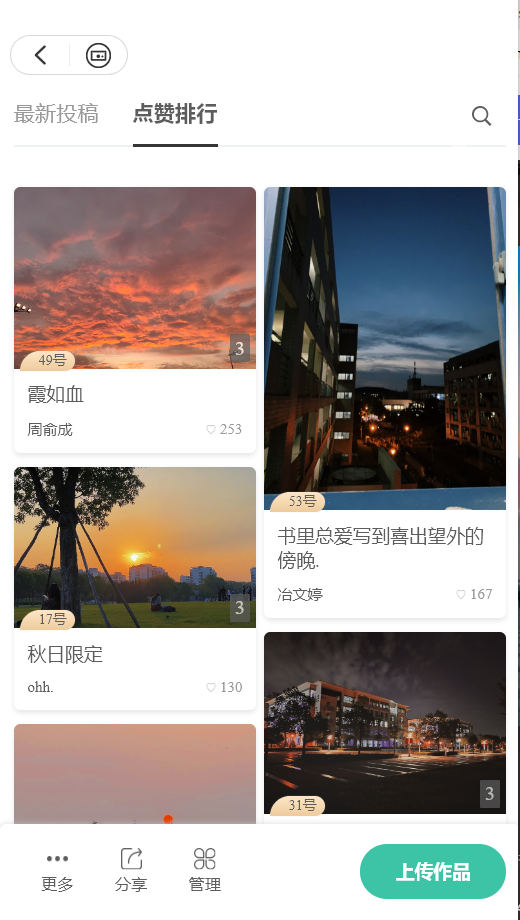 活动通过大一各团支部大力宣传,得到了新生们的积极响应,全年级共征集了67组作品。围绕“我与加勒比扑克 初相遇”的主题,同学们通过微信小程序,可以快捷提交参赛作品及个人信息。同学们通过转发拉票,为自己的作品赢得支持,也提高了活动的知名度与参与度。投票截止后,大赛依照投票数选出一、二、三等奖,并由关工委张慈萍、严卯生老师推荐,选出五个特别提名奖。学院关工委为获奖同学颁发了创意礼品,并对获奖作品进行了展示与宣传。
