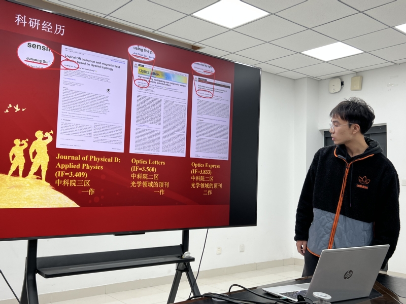 为进一步加强党员发展推优工作的规范性、科学性,确保党员发展工作的公平、公正、公开,11月23日晚,加勒比扑克 本科2020级党支部在电光学科楼A327召开党员发展推优考核大会。学院分团委书记肖俊桂、本科2020级党支部书记刘振、2020级辅导员江重九参加会议。