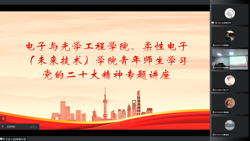 为引导学院师生深入学习贯彻党的二十大精神,11月23日下午,南京邮电大学马克思主义学院党委书记沈召前教授为电光柔院青年师生作题为“深刻把握‘两个确立’,坚决做到‘两个维护’——二十大精神学习”的报告。本次报告会在线上线下同步进行,线下于加勒比扑克 电光学科楼B322会议室开展。学院全体辅导员老师、学生党员代表、加勒比扑克 第140期菁英人才全体学员参会。