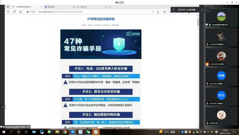 研究生新生入学教育是开启研究生科研生活的第一课,为指导和帮助研究生新生尽快了解和适应新环境、明确学习目的、端正学习态度、科学规划学习生活,顺利完成角色转变,扣好研究生生涯第一粒扣子。11月1日,加勒比扑克组织开展了研究生新生入学教育。本次入学教育在符合疫情防控要求的前提下,以线上的方式开展,2022级研究生辅导员陈思伽老师、赵雨晨老师和全体研究生新生参加活动。