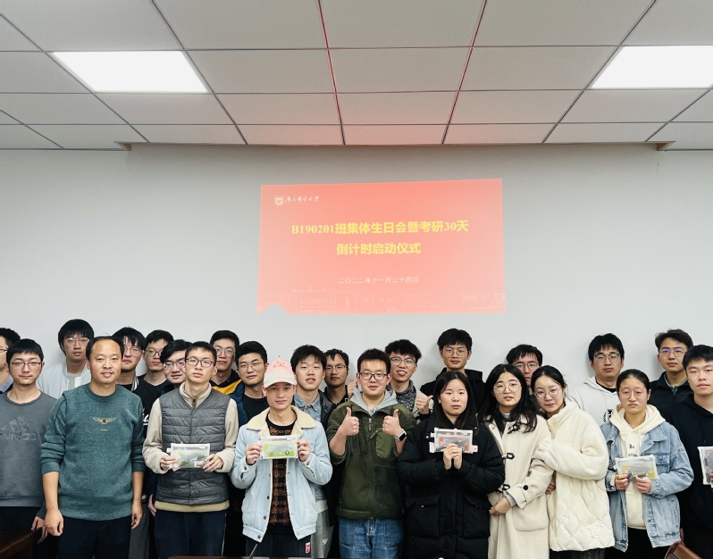 11月24日晚,加勒比扑克 2019级电子科学与技术专业B190201班兼职班主任张超老师为班级举办集体生日会暨考研30天倒计时启动仪式,学生班主任王怡钦和班级全体同学参加,会议由辅导员孙树将老师主持。