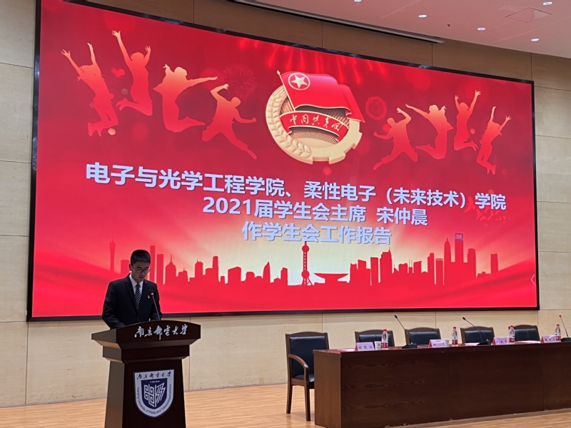 电光柔院2021届研究生会主席谢思扬、2021届学生会主席宋仲晨分别做了题为《青春逢盛世,奋斗筑华章——助力全院青年学生在放飞青春梦想道路上谱写绚丽华章》的学生会工作报告和《无愧使命担当不负伟大梦想》的研究生会工作报告。他们回顾了过去一年学院学生组织的工作成绩,也对未来提出了新的规划。