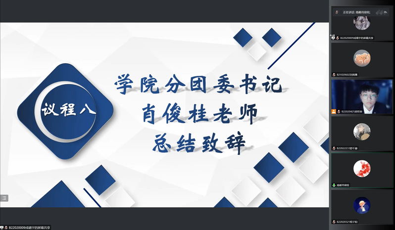 电光柔院分团委书记肖俊桂老师作总结发言,她高度认可了学生会同学们的奉献精神和服务意识,期望同学们在逆境中寻求新的变化,有清晰的自我定位,具有思辨能力,提高自我能力,丰富大学生活,不负初衷,感受大学生活的魅力。