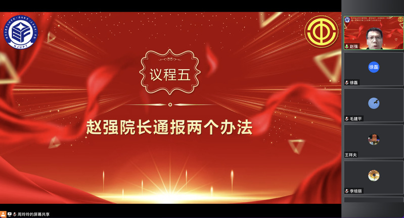 院长赵强、副院长程勇分别对《加勒比扑克 科研团队建设实施办法(试行)》《加勒比扑克 教师工作用房管理办法》等进行了通报。