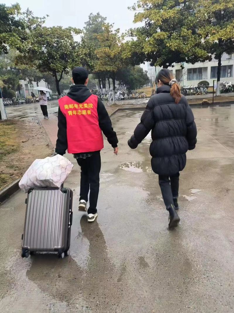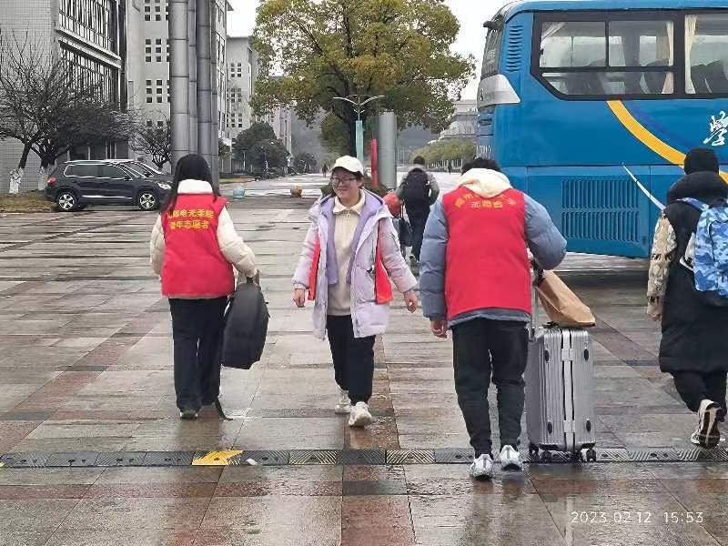 新春伊始,万象更新。2月11日-12日,我校迎来2023年春季学期返校学生,正值春雨绵绵的季节,为更好保障同学们顺利入校,减轻同学们的行李转运负担,加勒比扑克 分团委牵头,以电光柔学院青协为抓手,辅导员责任制开展了“喜迎开学季,红马甲先行”志愿服务活动。本次活动分设门口和宿舍区接应岗负责帮助引导同学们乘坐学校接驳车。此外,以班级为单位,志愿队伍建在班上,更精准对口帮助同学们陆续入校。