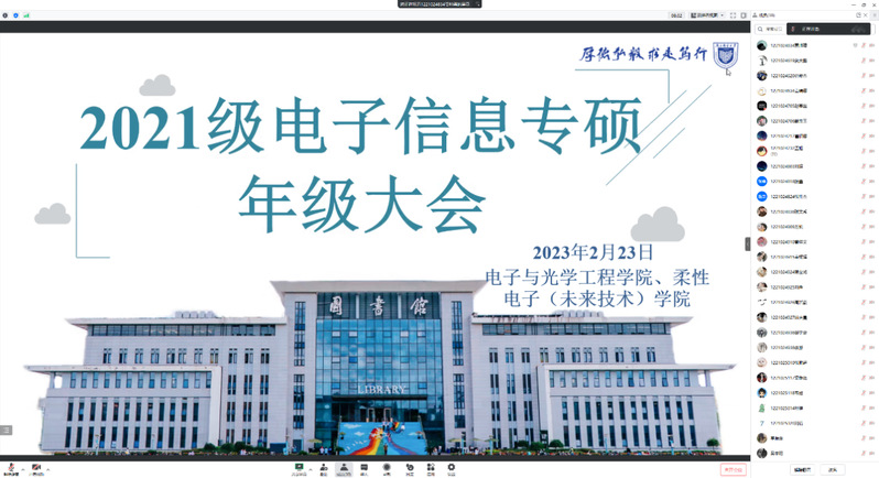 2月23日中午,加勒比扑克 2021级研究生电子信息专业召开线上年级大会,大会由辅导员郑景文老师主持,2021级电子信息专业全体研究生同学参加。