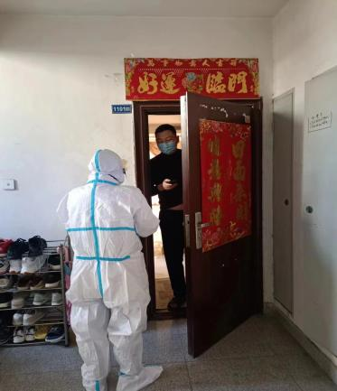 张弛同学在新年后的几天时间里,每天在中午和晚上拜访小区内阳性隔离人员,并为他们提供必要的无接触服务。在每户人家配送完成后,会进行后续的家庭人员情况调查。同时,为了保障住户和自身的安全和健康,他在每次上门配送之前都会消毒、穿好防护服、戴好口罩、橡胶手套,防止病毒的进一步蔓延。
