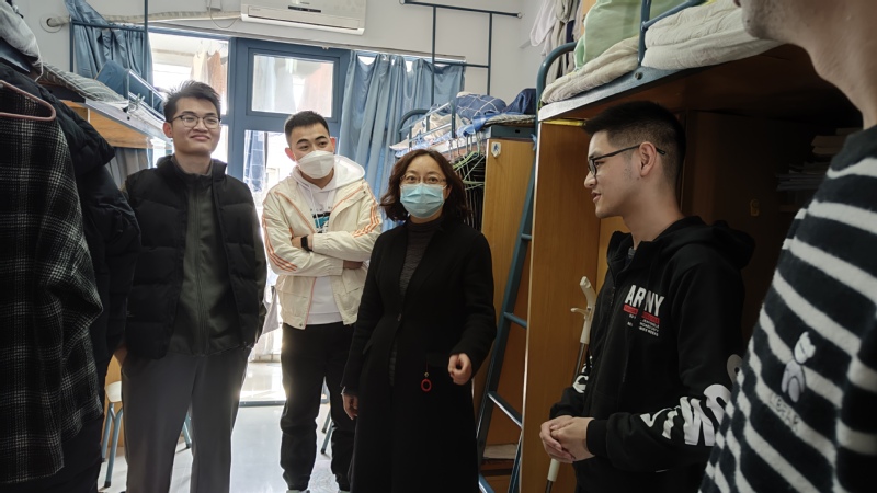 在走访宿舍过程中,学院领导、老师们向同学们传达了学校关于宿舍安全的相关要求,提醒同学们不可使用违章电器,在寝室不要有吸烟、乱扔烟头等危险行为,务必注意宿舍安全用电,提高安全防范意识。此外,徐书记就大四学生们近期比较关心的升学、就业等问题与同学们亲切交流,认真听取同学们各方面的意见和建议,鼓励大家以积极阳光的心态朝着自己的目标不断努力,让大学最后的时光充实精彩。