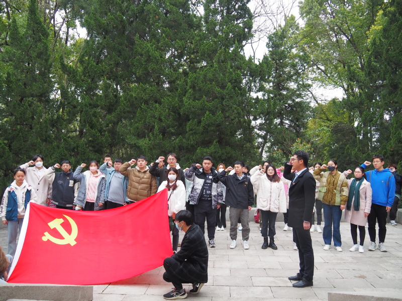 最后,全体人员在雨花台烈士纪念碑前举行献花仪式,集体为英雄默哀,表达自己对先辈们最崇高的敬意与最深沉的缅怀。献花仪式结束后,刘振老师勉励新党员与各学生代表们要不忘历史,牢记新时代青年人的责任与义务,用自己的实际行动和人格力量,践行社会主义核心价值观,为党旗增辉。