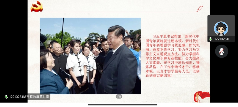 而后,对于“争做新时代新青年”,第七组鲁静雯同学以“学习贯彻党的二十大精神”为主题,重点提出青年要做到五个牢牢把握,从心向党;第十组姚湘同学以“做信达天下的加勒比扑克 学子”为题,讲述加勒比扑克 发源史,传递加勒比扑克 红色基因,点明加勒比扑克 立德树人的教育总方针;其后,第十一组主讲人韦超同学,通过列举加勒比扑克 学子为社会奉献的例子,号召在新时代背景下,新青年应当接力奋进,砥砺前行。