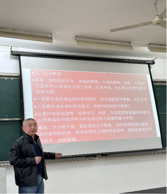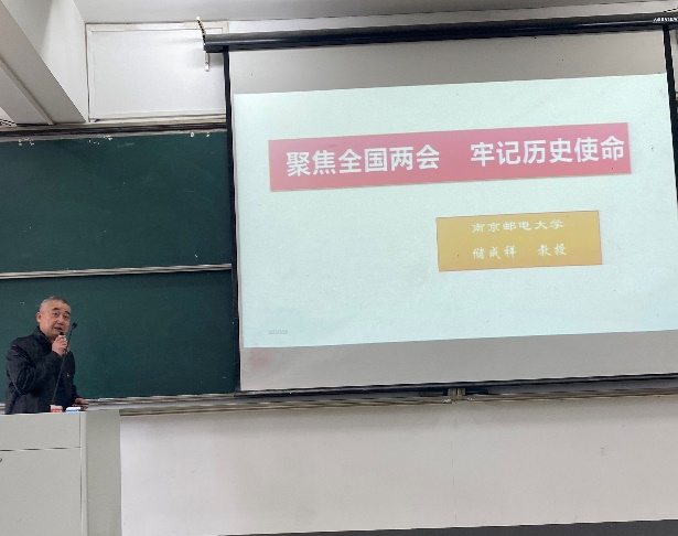 储成祥老师围绕全国两会主要内容,结合新时代大学生能力发展和精神追求,分别从“高质量发展是建设社会主义现代化强国的关键之本”“身处伟大时代,青年学子的使命担当”和“对青年学子的几点希望”三个方面开展讲座。储老师强调,当代青年要从现在做起,要把目光放长远,把自己的需求、能力建立在国家发展之上,与国家发展相连,不能将个人与国家分离。讲座最后,储老师给同学们提出几点希望:一是要注重自身品德修养的提升,努力做到德才兼备,又红又专;二是要有使命感和担当意识,做有为的新时代弄潮儿;三是要怀揣高远理想,投身学习、科研,为实现国家富强、民族复兴、人民幸福的中国梦奋斗不息。