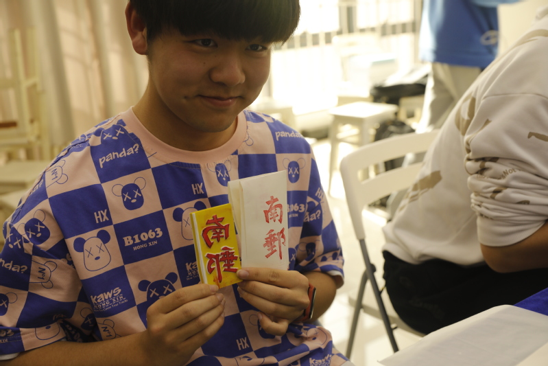 一个橡皮章的完成,贵在创想和现实联结的一刻。在雕刻的过程中,时间仿佛停止,同学们能完全沉浸其中,收获内心的平静和美好,深入感受文化与艺术碰撞,充分体会历史与现实贯通。刻章过程中,更有工作人员对有问题的同学提供帮助,并拍摄记录了刻章过程中的美好一刻。最后,同学们陆续完成了自己的刻章作品:图案雕工精湛,线条流畅,刻画生动细腻,栩栩如生;文字提顿起伏,一波三折,意蕴深远十足,内涵丰富。