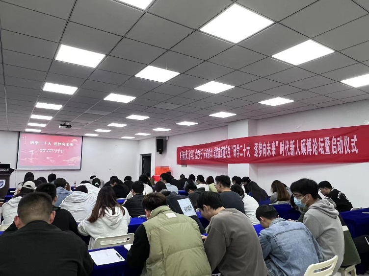 本次论坛旨在深入学习贯彻党的二十大精神,用习近平新时代中国特色社会主义思想凝心铸魂,紧紧围绕当代科研与学术热点问题,全面提升研究生的综合素质能力,帮助研究生青年学子树立为祖国拼搏奋斗、赤诚奉献的坚定理想,积极引导广大研究生同学自觉成为立大志、明大德、成大才、担大任的时代新人。活动伊始,毛书记和徐书记共同按下启动按钮,首场研究生时代新人硕博论坛正式启动。
