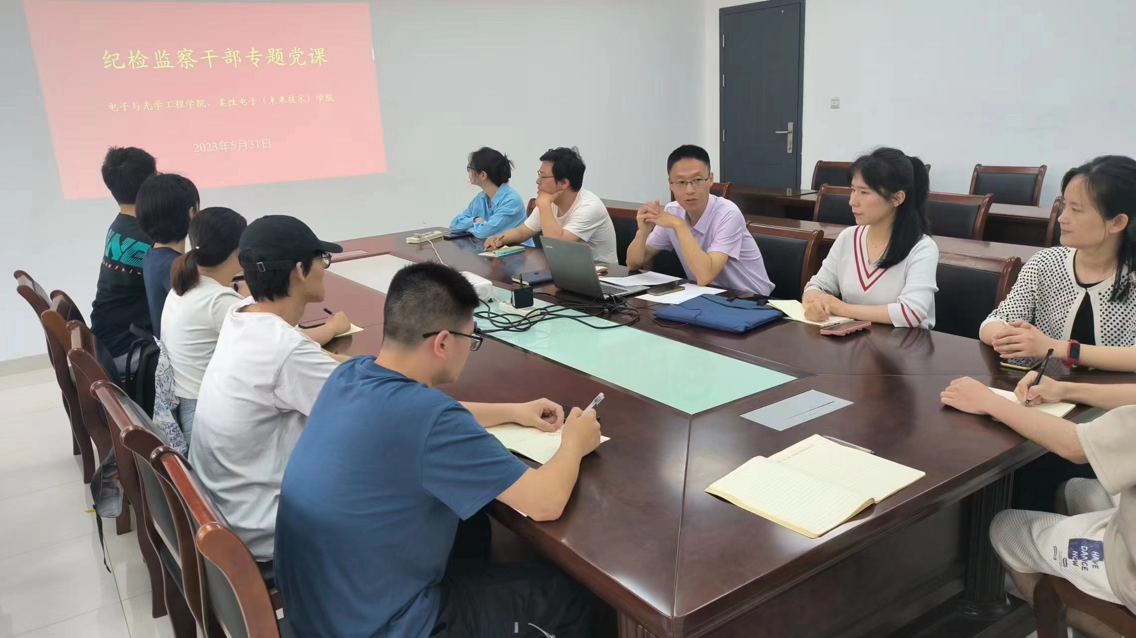 在学科楼A328召开纪检监察干部政治理论学习与业务培训会,学院党风联络员、特邀监察员、党支部纪检委员等参加培训会,会议由学院纪检委员宋健康主持。
