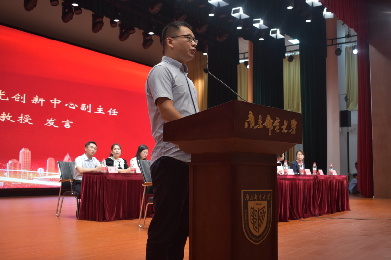 教师代表陈建飞教授在发言中勉励新生,要利用未来四年的时间,不仅学到知识,更能成为一个全面发展的人。他还鼓励新生要勇敢探索,发挥自身潜力,积极投身科学研究和实践创新,为国家的科技进步作出贡献。