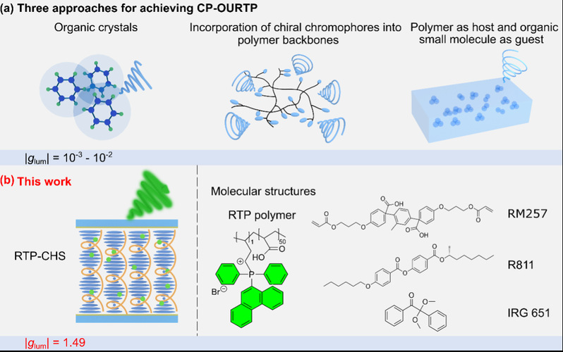 图1.圆偏振有机超长室温磷光的新旧实现方法。