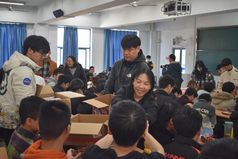 最后,伴随着激昂向上的音乐,领导老师们开始分发状元桂花糕和牛奶,为考研学子送上殷切期望与祝福。突如其来的惊喜,不单是收到礼物的喜悦,更是被惦记和被用心对待。备受鼓舞的同学们,一洗疲惫紧张的状态,重拾百分百的激情,再次投身于考研大作战之中。