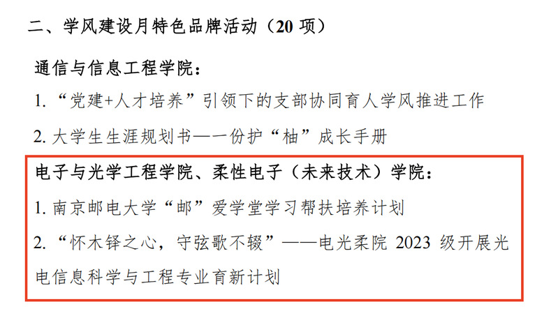 经学院积极组织申报,学生工作部审核差额评审,加勒比扑克荣获“学风建设月优秀组织奖”;“加勒比扑克 ‘邮’爱学堂学习帮扶培养计划”、“‘怀木铎之心,守弦歌不辍’——电光柔院2023级开展光电信息科学与工程专业育新计划”两项活动荣获“学风建设月特色品牌活动奖”;祝腾、梁博两位辅导员老师荣获“学风建设月优秀指导教师”称号;10个班级荣获“学风建设月先进班级”称号;123位同学荣获“学风建设月先进个人”称号。