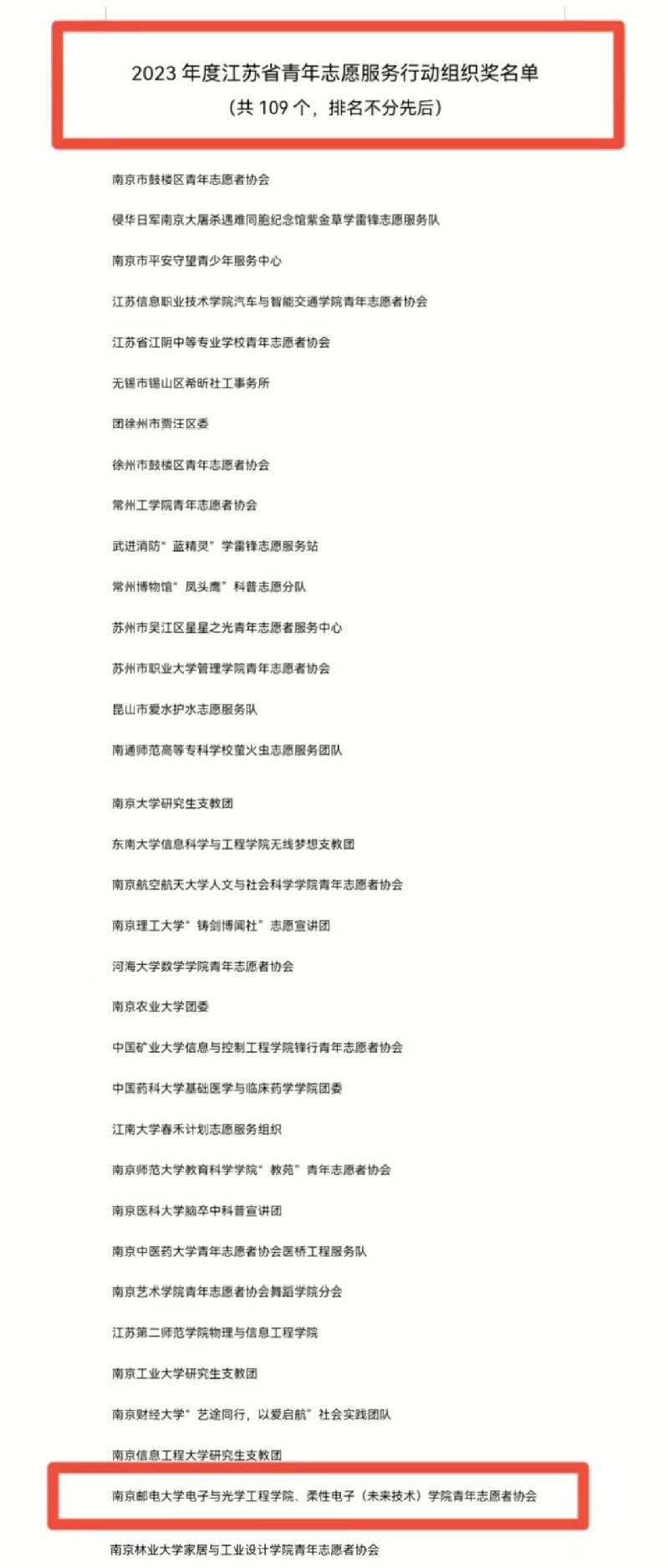 日前,省青年志愿者协会开展了2023年度全省青年志愿者行动评选工作,得到了广大青年志愿者、青年志愿者组织的广泛关注和积极参与。经各地、各单位推荐和个人自荐,省青年志愿者协会经资格初审和专家评审,形成了“2023年度江苏省优秀青年志愿者、志愿服务项目、志愿服务行动组织奖、志愿服务事业贡献奖”候选名单。