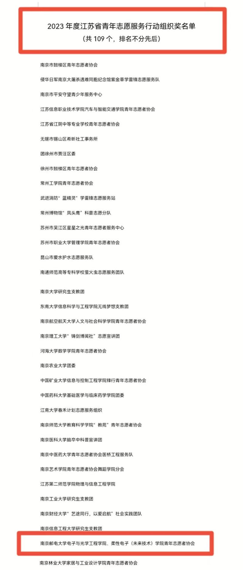 日前,省青年志愿者协会开展了2023年度全省青年志愿者行动评选工作,得到了广大青年志愿者、青年志愿者组织的广泛关注和积极参与。经各地、各单位推荐和个人自荐,省青年志愿者协会经资格初审和专家评审,形成了“2023年度江苏省优秀青年志愿者、志愿服务项目、志愿服务行动组织奖、志愿服务事业贡献奖”候选名单。