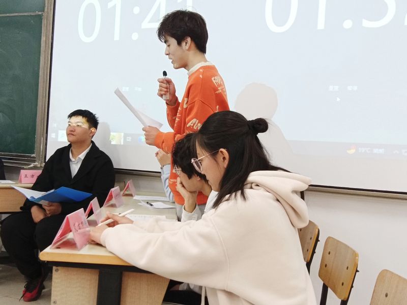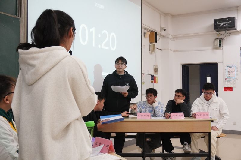随着主持人热情洋溢的开场,比赛正式拉开帷幕。现场气氛紧张而热烈,观众们屏息凝神,悉心聆听。比赛共分为三场进行,前两场为大一四进二比赛,辩手们或慷慨激昂,或沉稳内敛,展现出出色的口才和思维能力。第三场为研究生代表队和院辩论队的表演赛,辩手们更是发挥出高水平的辩论能力,为大家呈现了一场有理有据的精彩辩论。