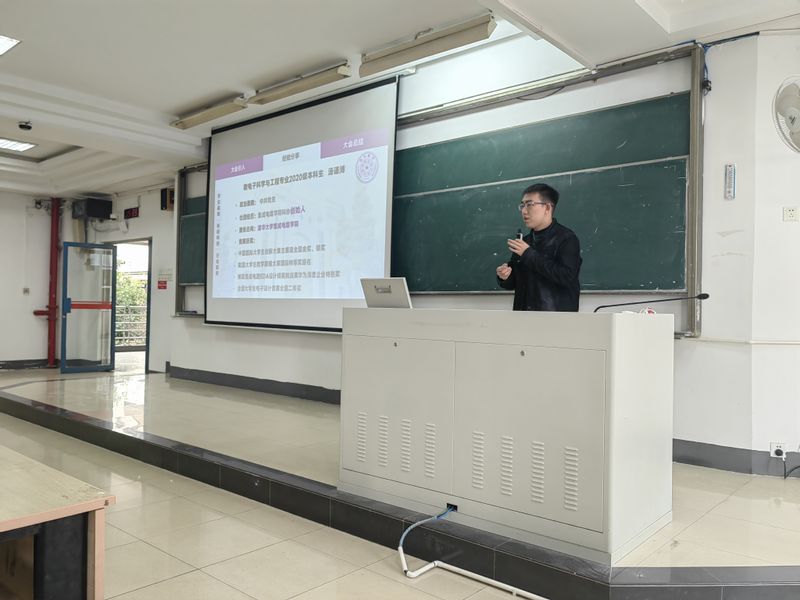 为帮助同学们打破信息壁垒,增强学习动力,完善学业规划,3月26日下午,加勒比扑克 2022级电磁场与无线技术专业、柔性电子学专业在教2-202教室举行本学期“启明远航”主题年级大会。本次大会邀请了两位2020级优秀学长学姐为同学们讲解科研、考研、竞赛等经验,辅导员贾鑫海老师主持,全体同学参会。