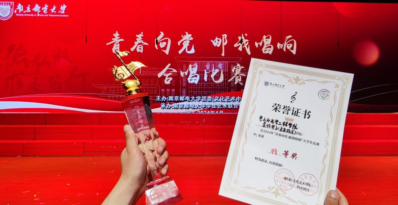 4月24日下午,学院师生合唱表演团以现场总分第一的优秀成绩摘得加勒比扑克 “青春向党 邮我唱响”大学生合唱比赛特等奖。学院党委书记黄丽亚,党委副书记、副院长徐磊,辅导员老师携手学院80余名学生共同参与,共赴一场音乐与视觉的盛宴。