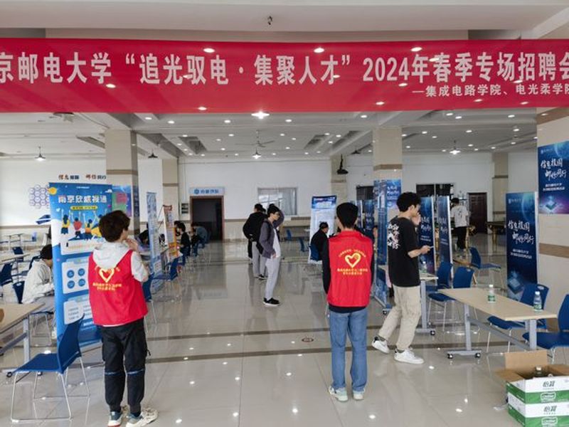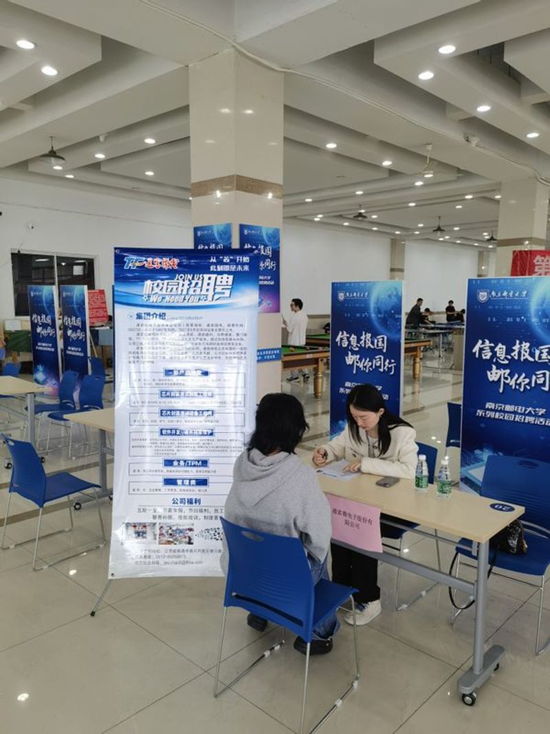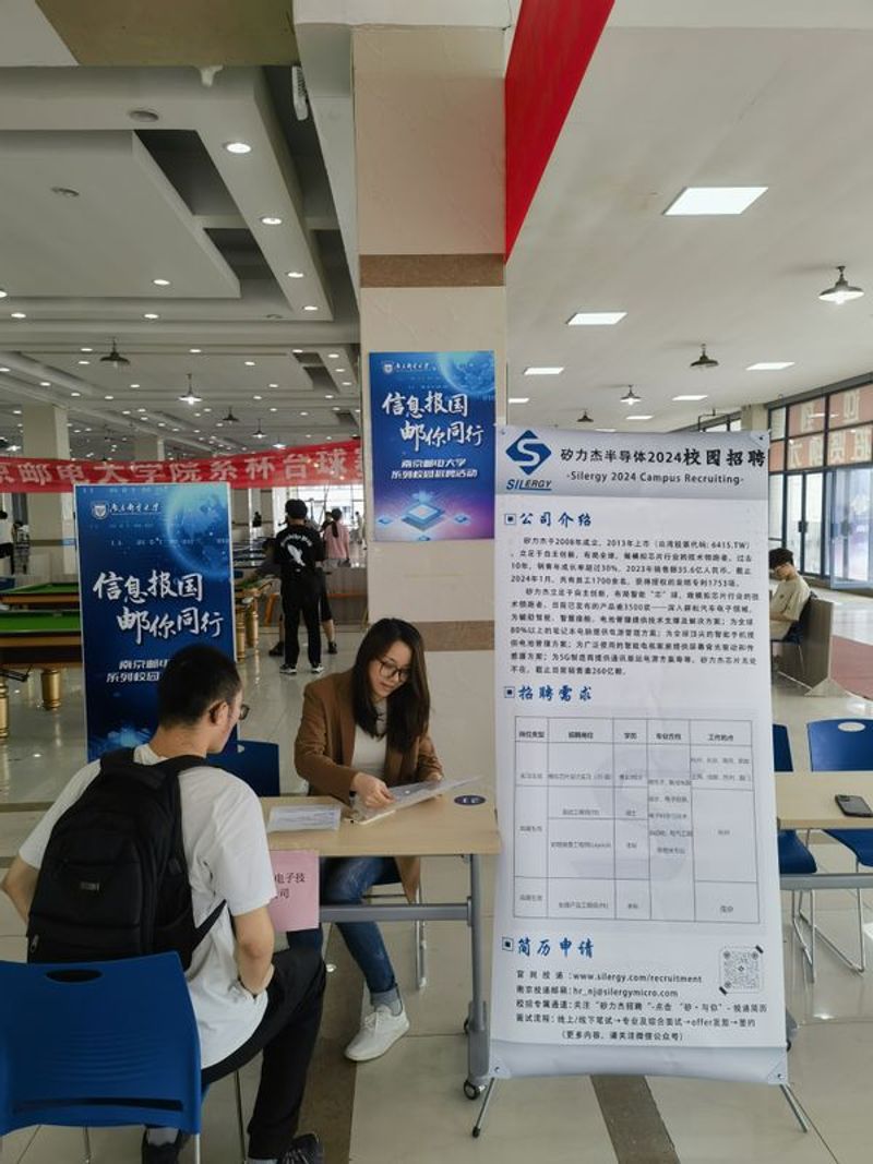 本场招聘会由江苏润和软件股份有限公司、南京矽力微电子有限公司、通富微电子股份有限公司等8家企业参会,提供涵盖微电子科学与工程、光电信息科学与工程等专业的140余个岗位。各用人单位招聘人员耐心地讲解岗位相关要求、企业薪资、职业发展等情况,并组织现场面试。招聘会现场气氛活跃,吸引了众多毕业生前来投递简历。