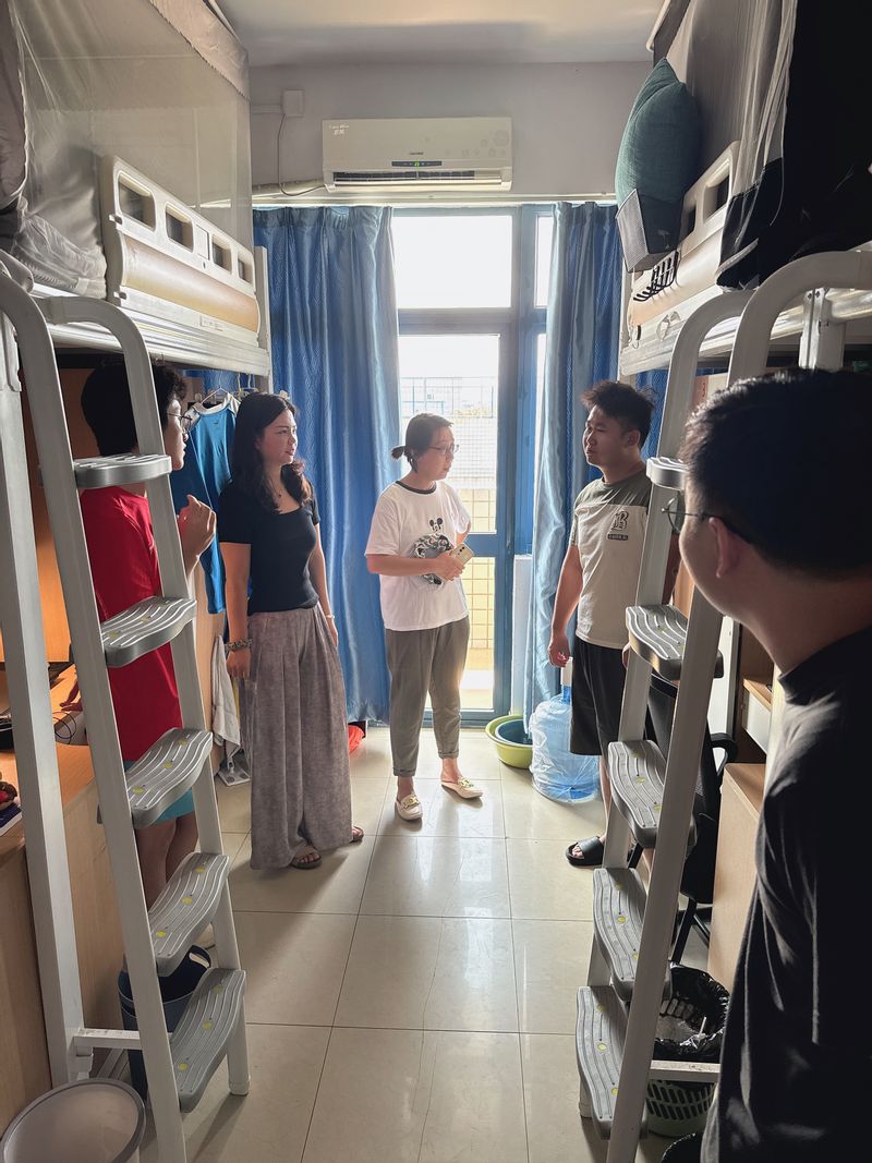随后,全体学工线老师按照苑区、宿舍楼、年级、班级依次走访全部学生宿舍。走访过程中,徐磊书记亲切询问了同学们新学期感受,了解大家假期的生活状况及新学期规划,提醒同学们要增强安全防患意识,并耐心地解答学生们提出的各种困难和问题。辅导员老师们提醒大家尽快调整作息,营造良好寝室氛围,平时注意排查宿舍安全隐患,增强识骗防骗意识,重视宿舍卫生清洁,共同建设安全稳定的校园环境。同时,徐磊书记一行仔细查看各个宿舍的基础设施设备、消防安全、卫生环境等情况,确保同学们能生活的开心,住得安心。